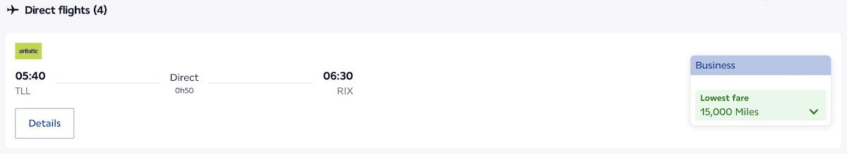 For example, a Tallinn (TLL) to Riga (RIX) flight would cost 7,500 points in economy or 15,000 points in business class…